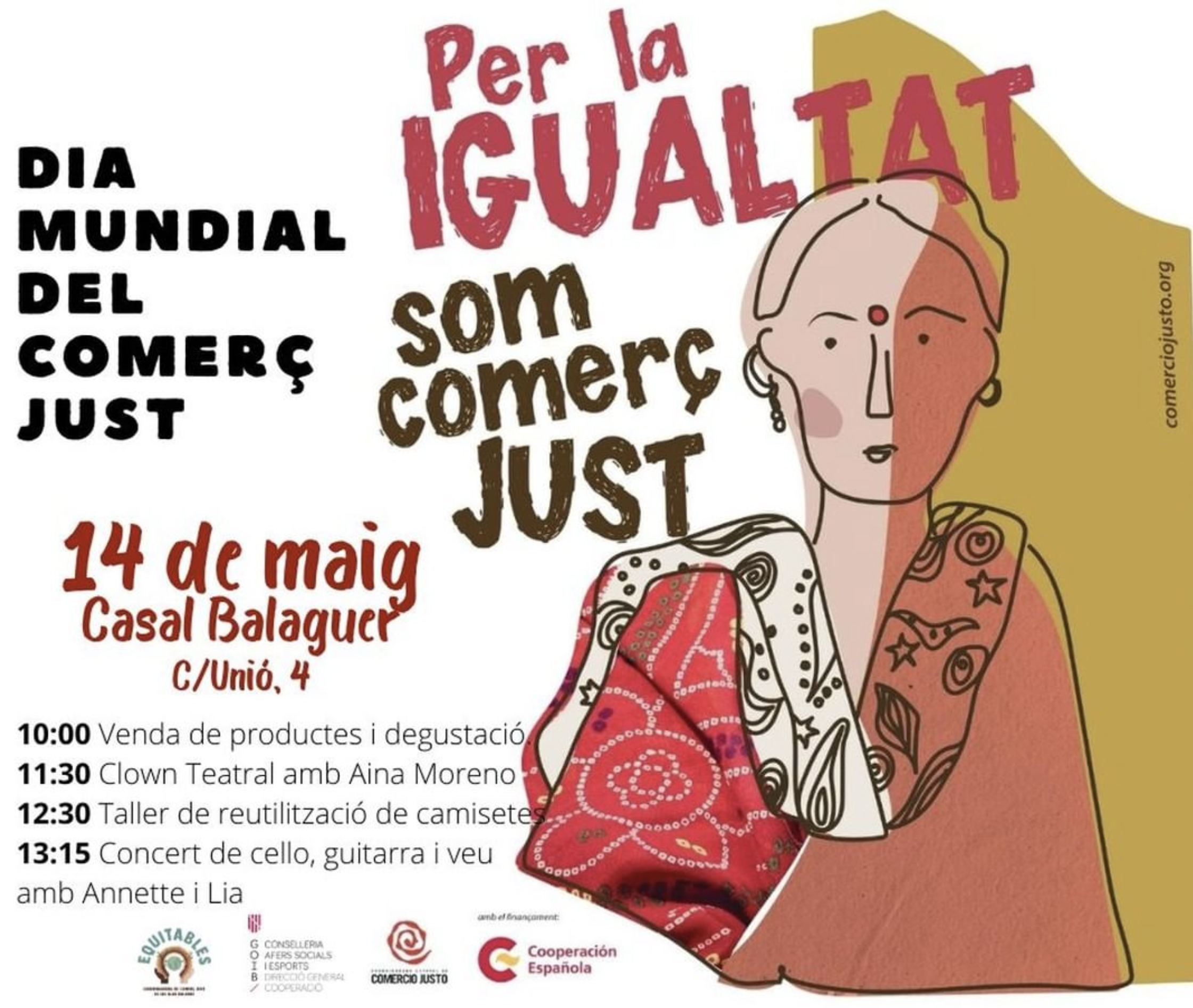 Dissabte, dia 14 de maig, celebram el dia Mundial del Comerç Just! Vine a celebrar-ho amb nosaltres al casal Balaguer, amb totes aquestes activitats: